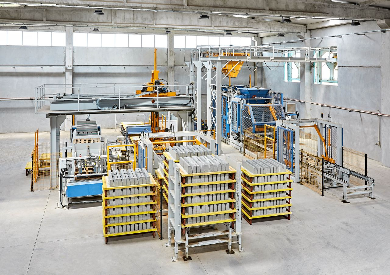 NS-36 concrete block machine group as standard Includes; concrete block machine, pallet transfer systems, product transfer systems and automation system. Concrete block production line is divided into two groups as wet and dry products. While the wet product transfer cycle involves transferring the products leaving the machine to the curing process depending on the system cycle, the dry product transfer cycle includes preparing the products for packaging from the dry product stacking unit.